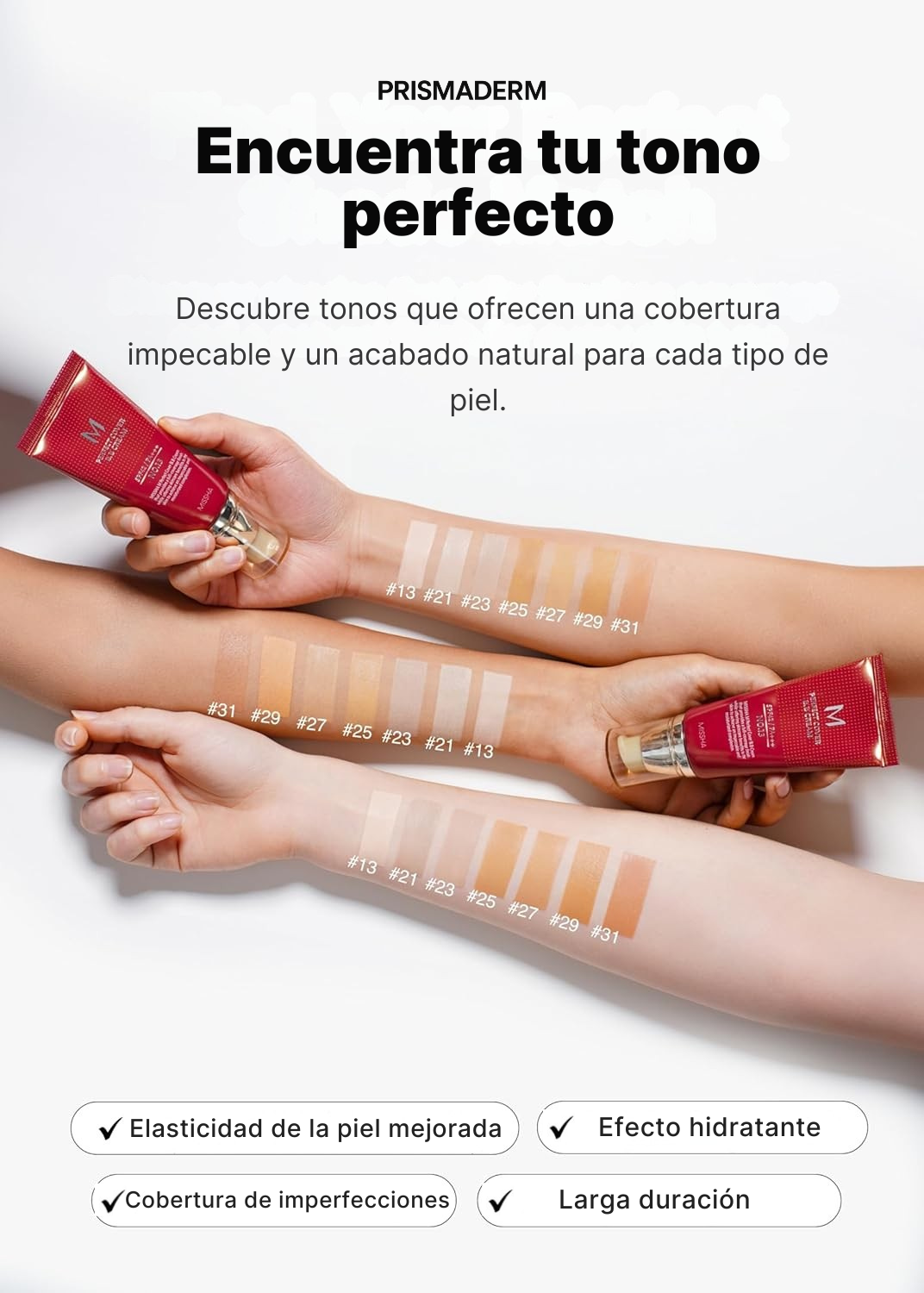 Elige tu tono: Desde No.13 Bright Beige para pieles claras hasta No.27 Honey Beige para tonos medios.