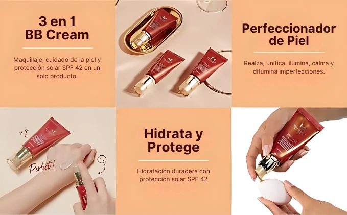 Con la Perfect Glow BB Cream SPF 42 PA+++, transforma tu rostro en minutos con un solo producto. Esta base multifuncional de 50ml hidrata, cubre imperfecciones, protege del sol y deja un glow saludable al estilo K-Beauty.